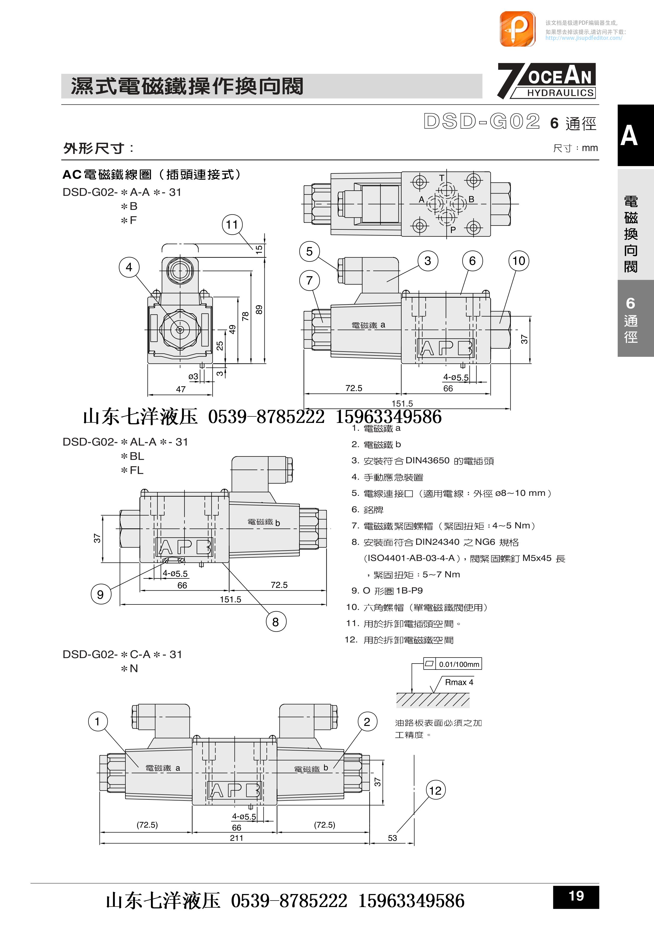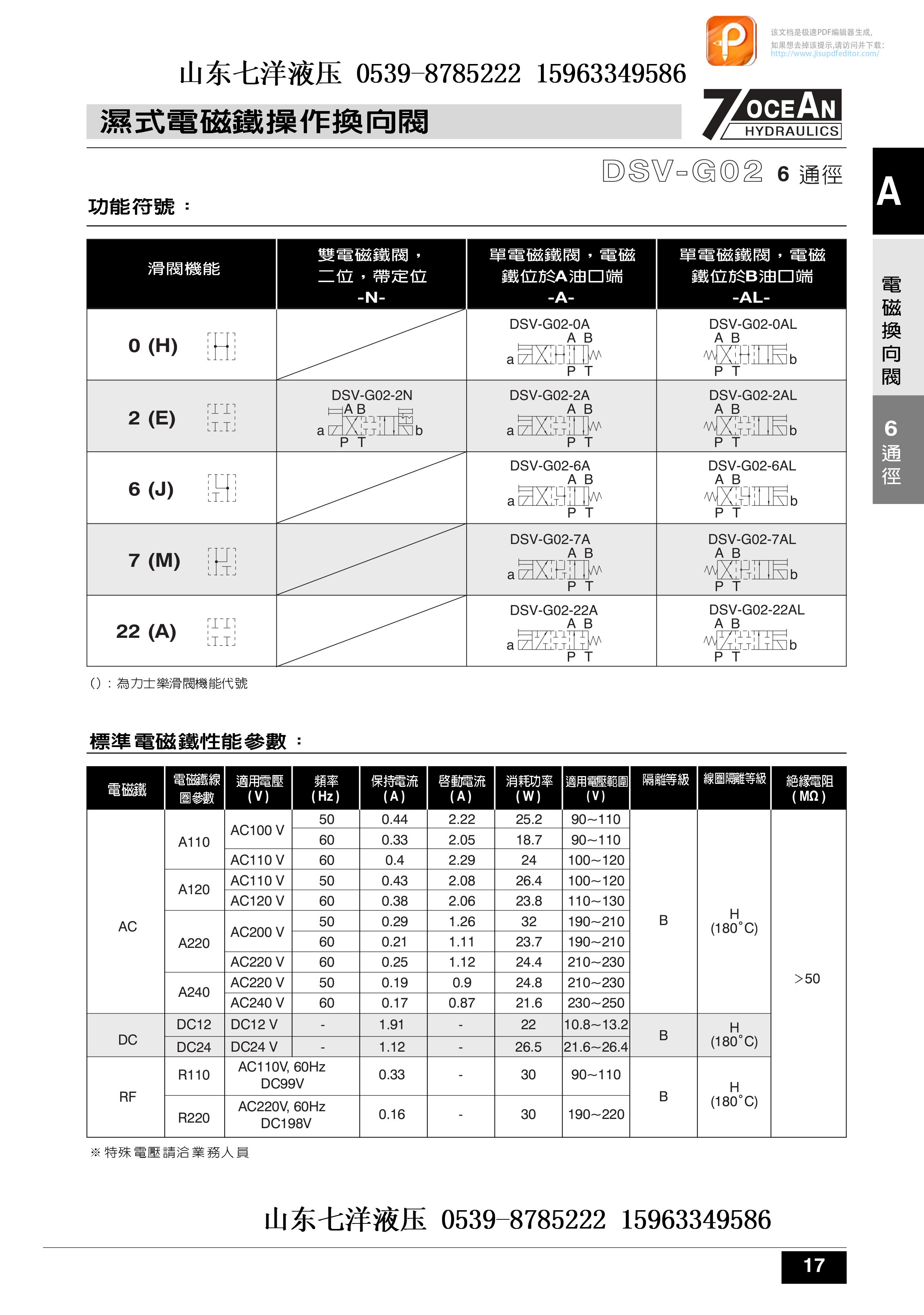 臺灣七洋7OCEAN電磁閥(電磁換向閥,液壓電磁閥,電磁方向閥)部分型號: