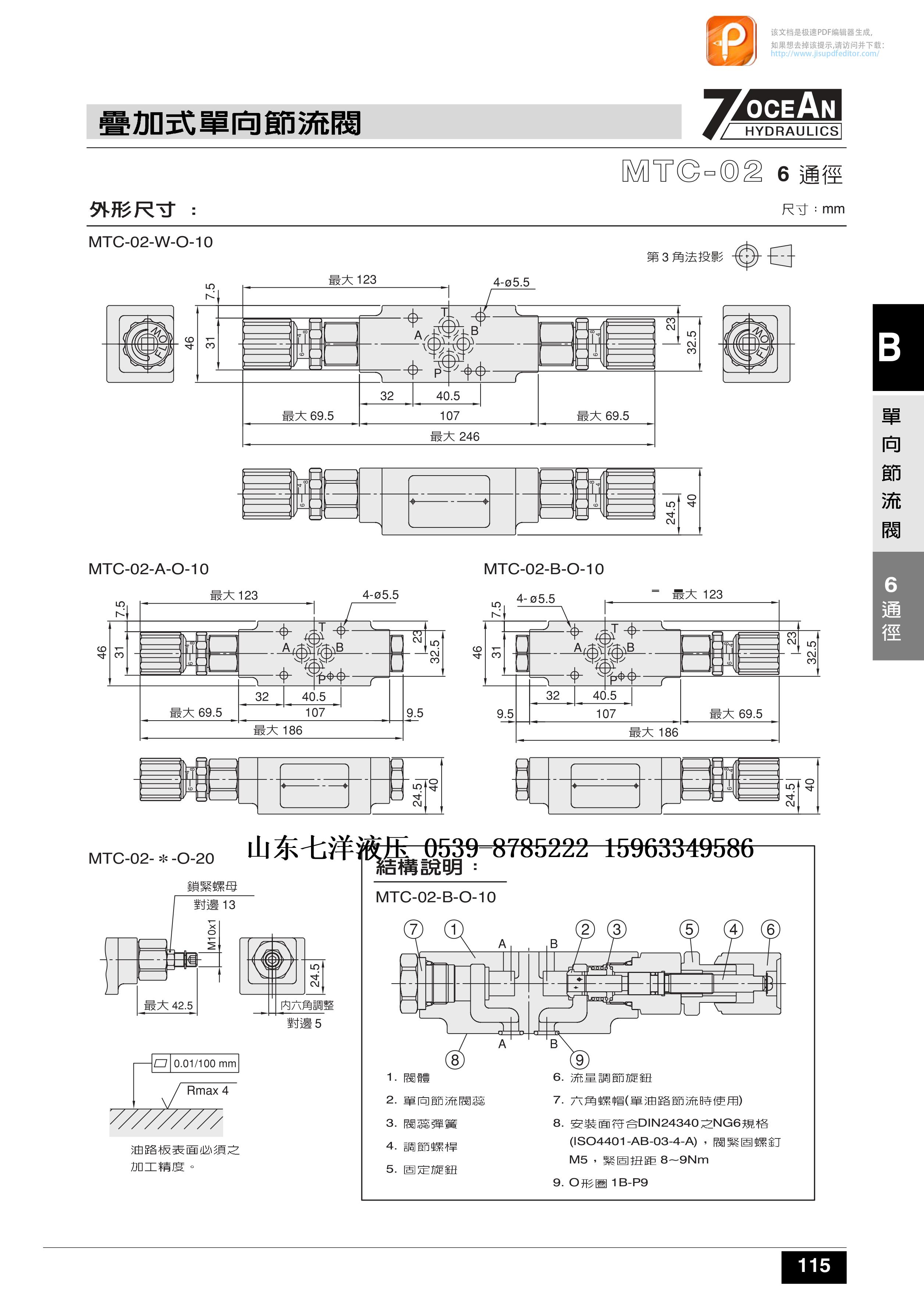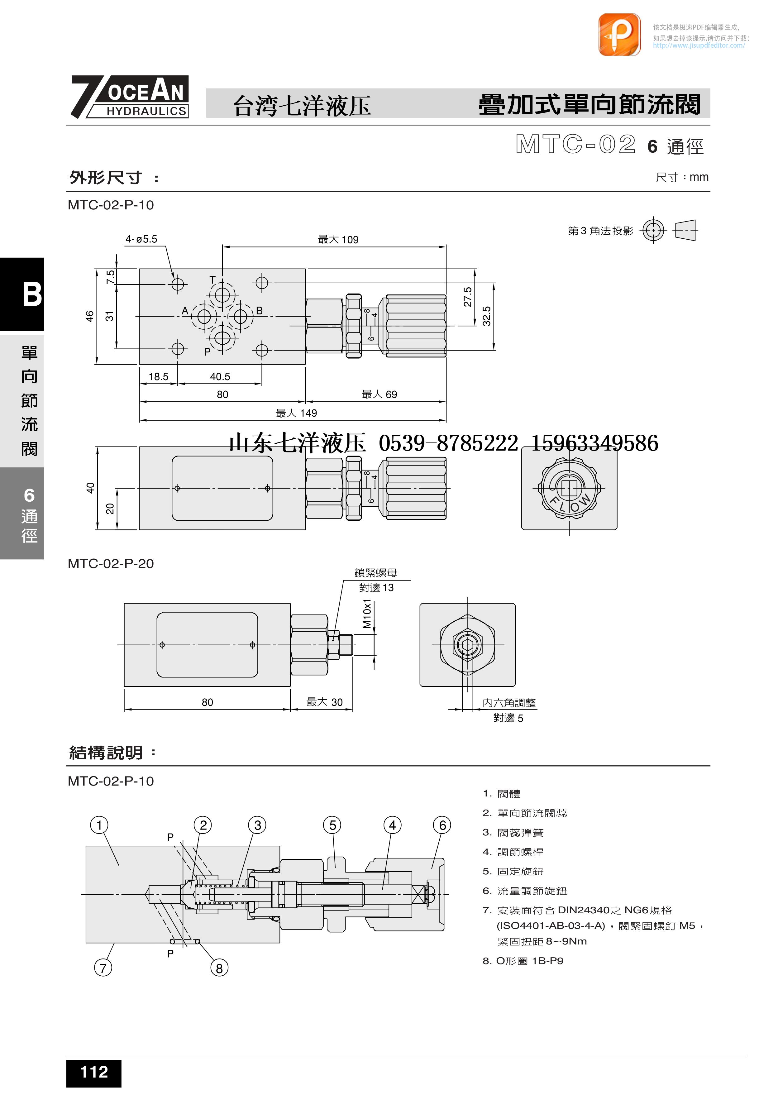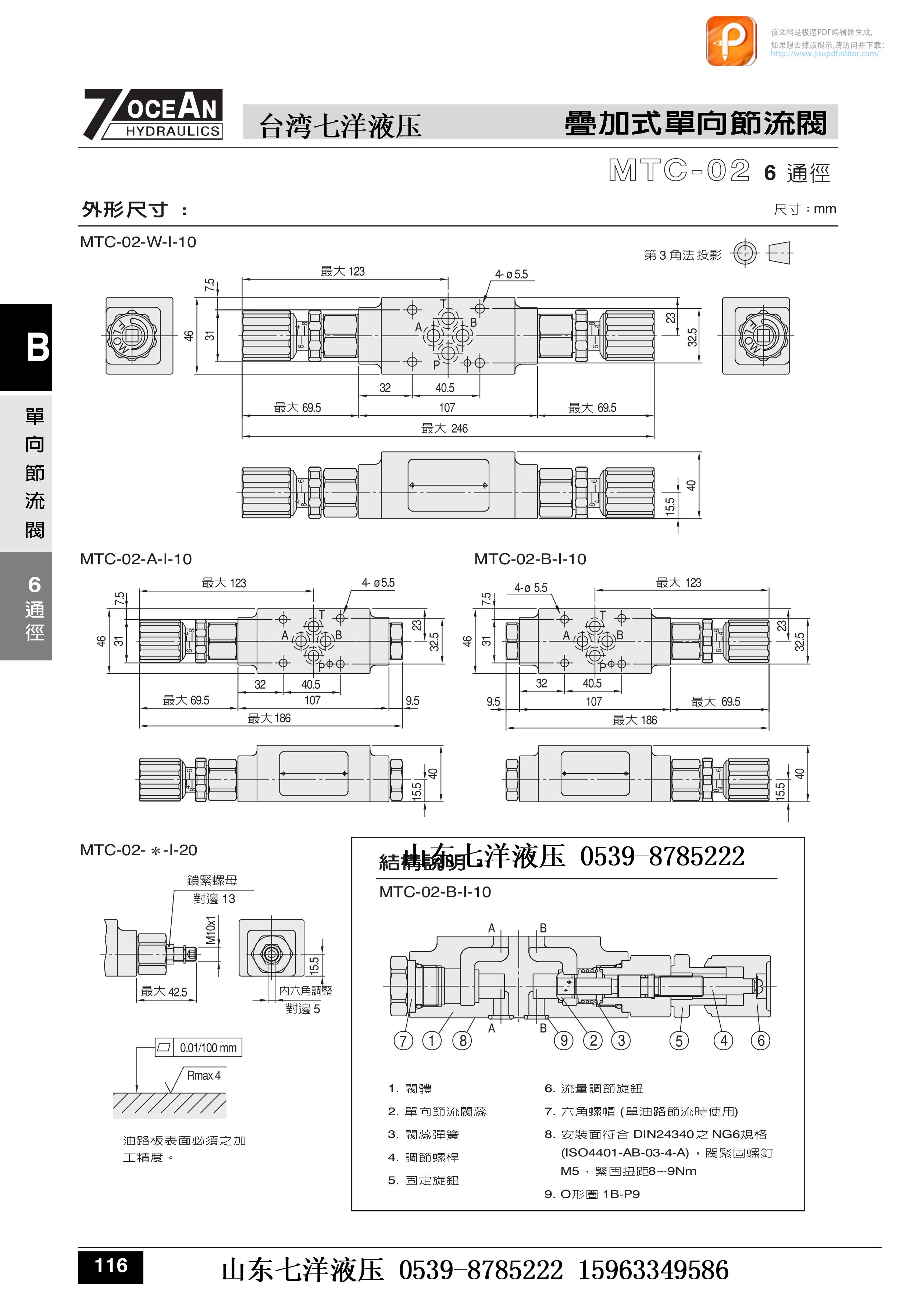 臺灣七洋7OCEAN疊加式單向節(jié)流閥