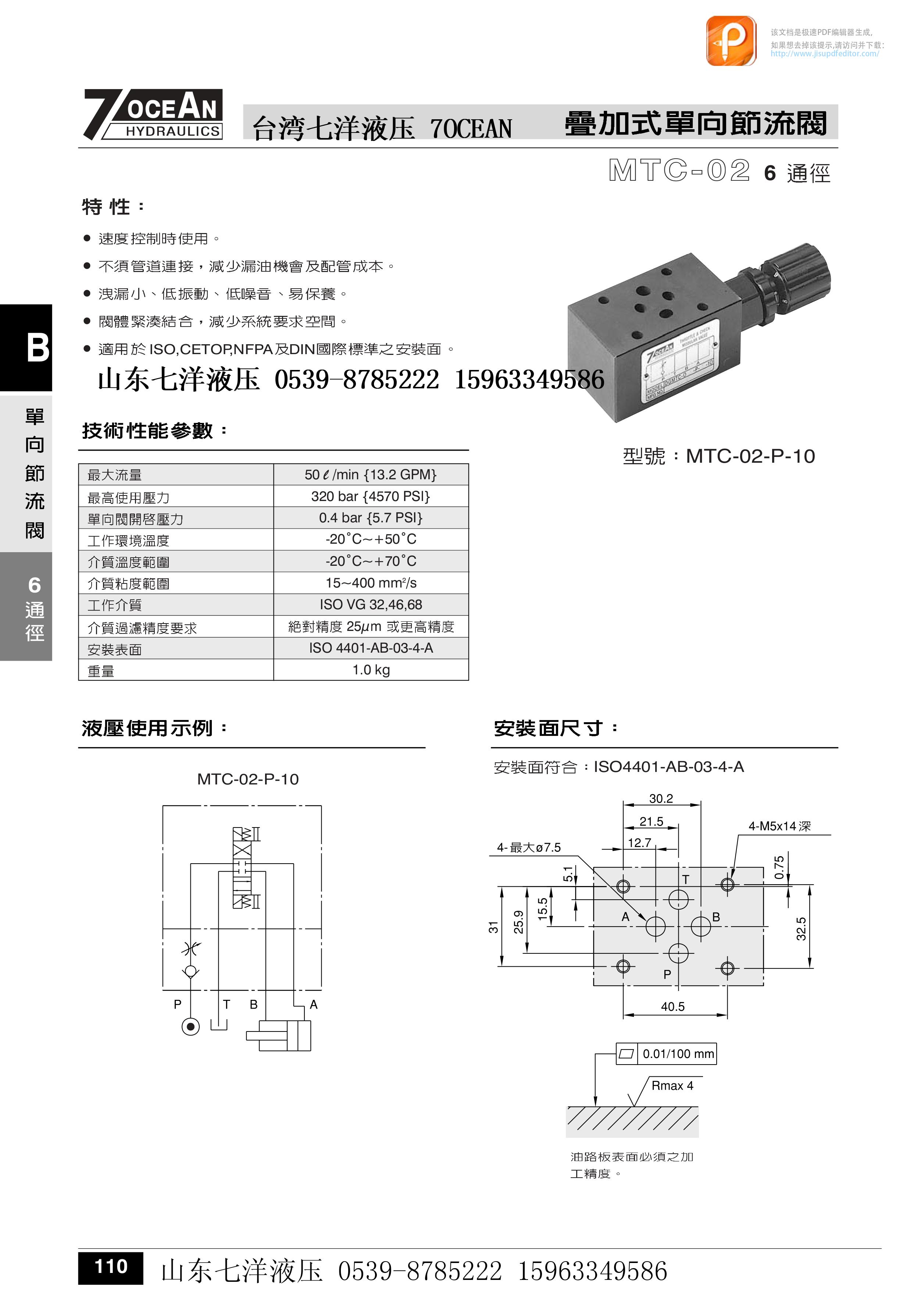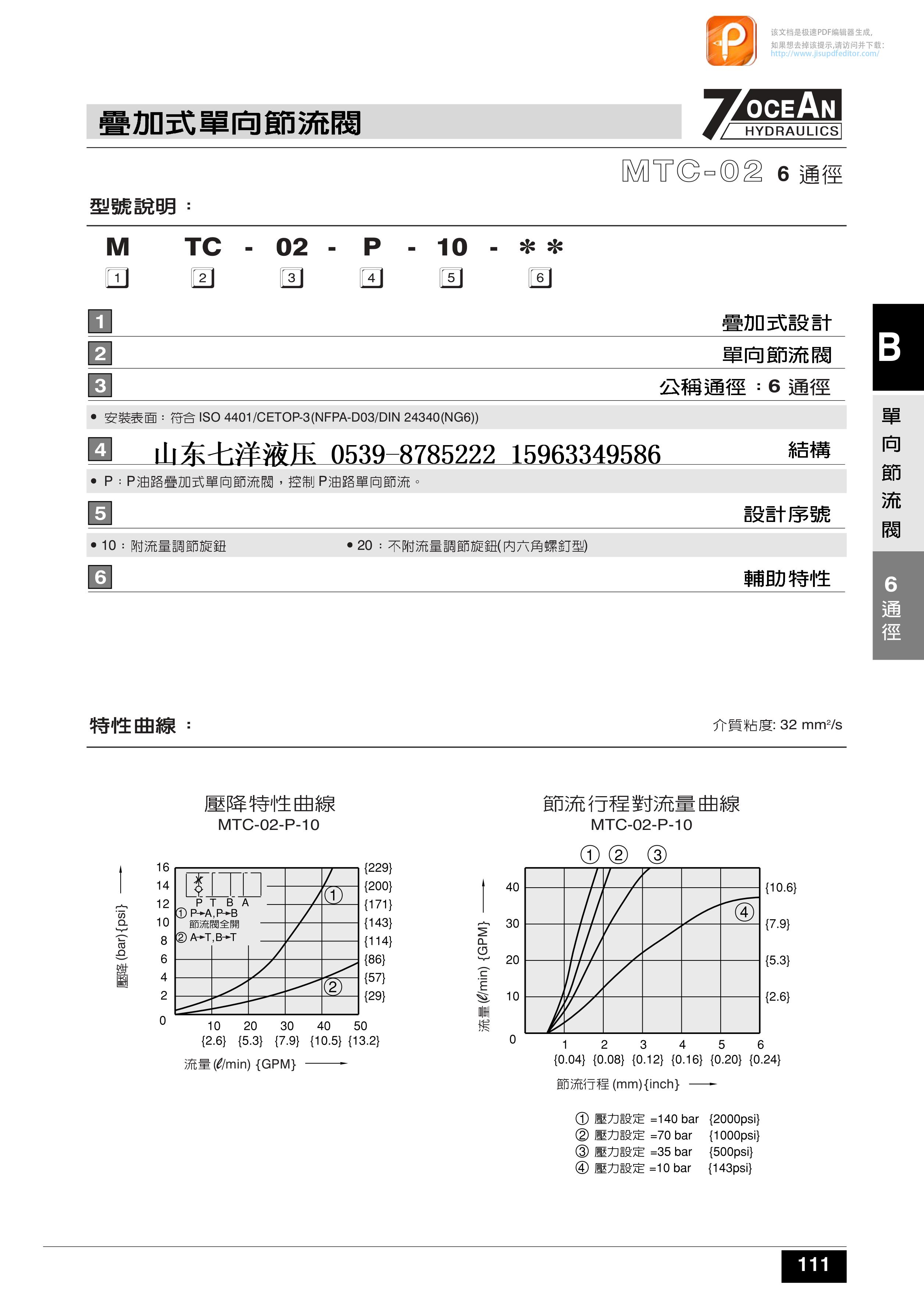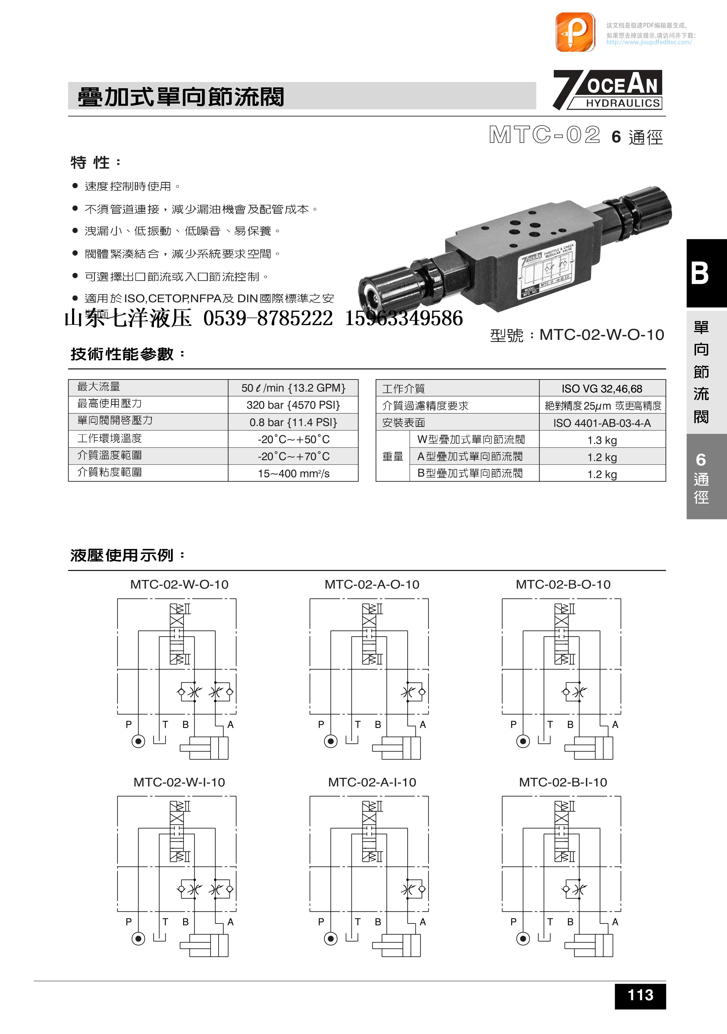 臺灣七洋7OCEAN疊加式單向節(jié)流閥
